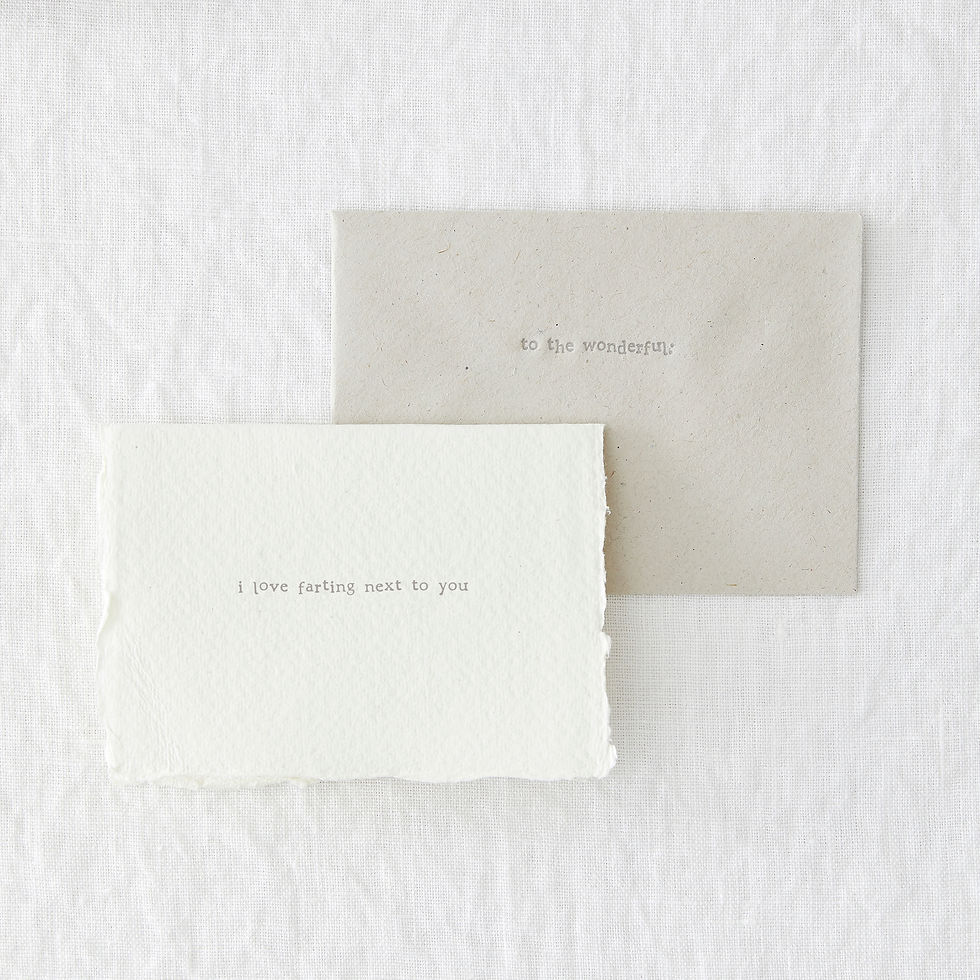 Unusual and amusing sayings hand printed on handmade rag edge paper and recycled envelopes.